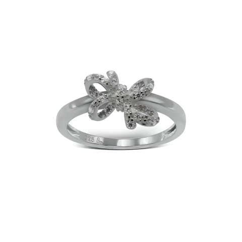 Anillo Plata 925 Doble moño y zirconias blancas. Talle 6: medida interna: 16.5 mm - Talle 7: medida interna: 17.4 mm